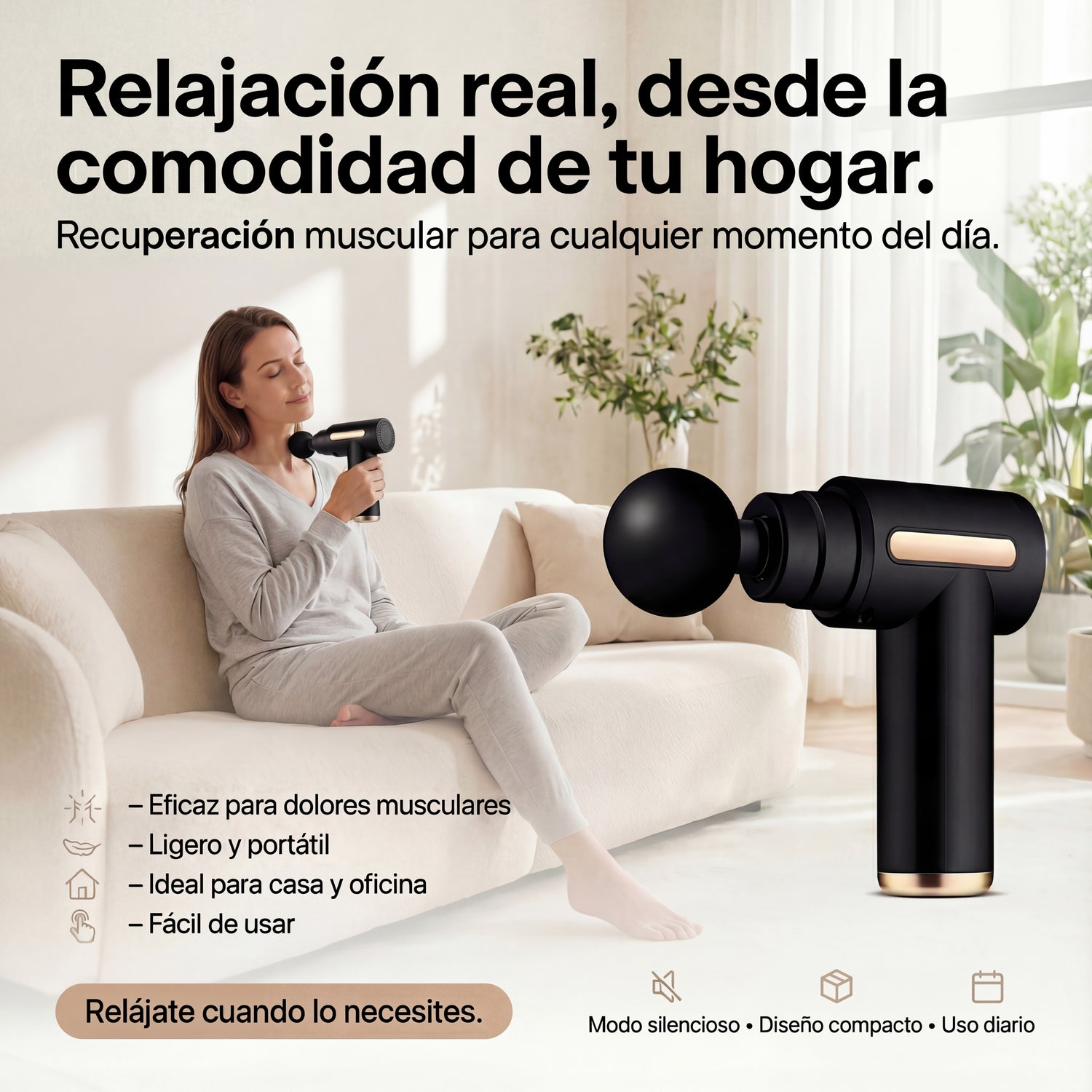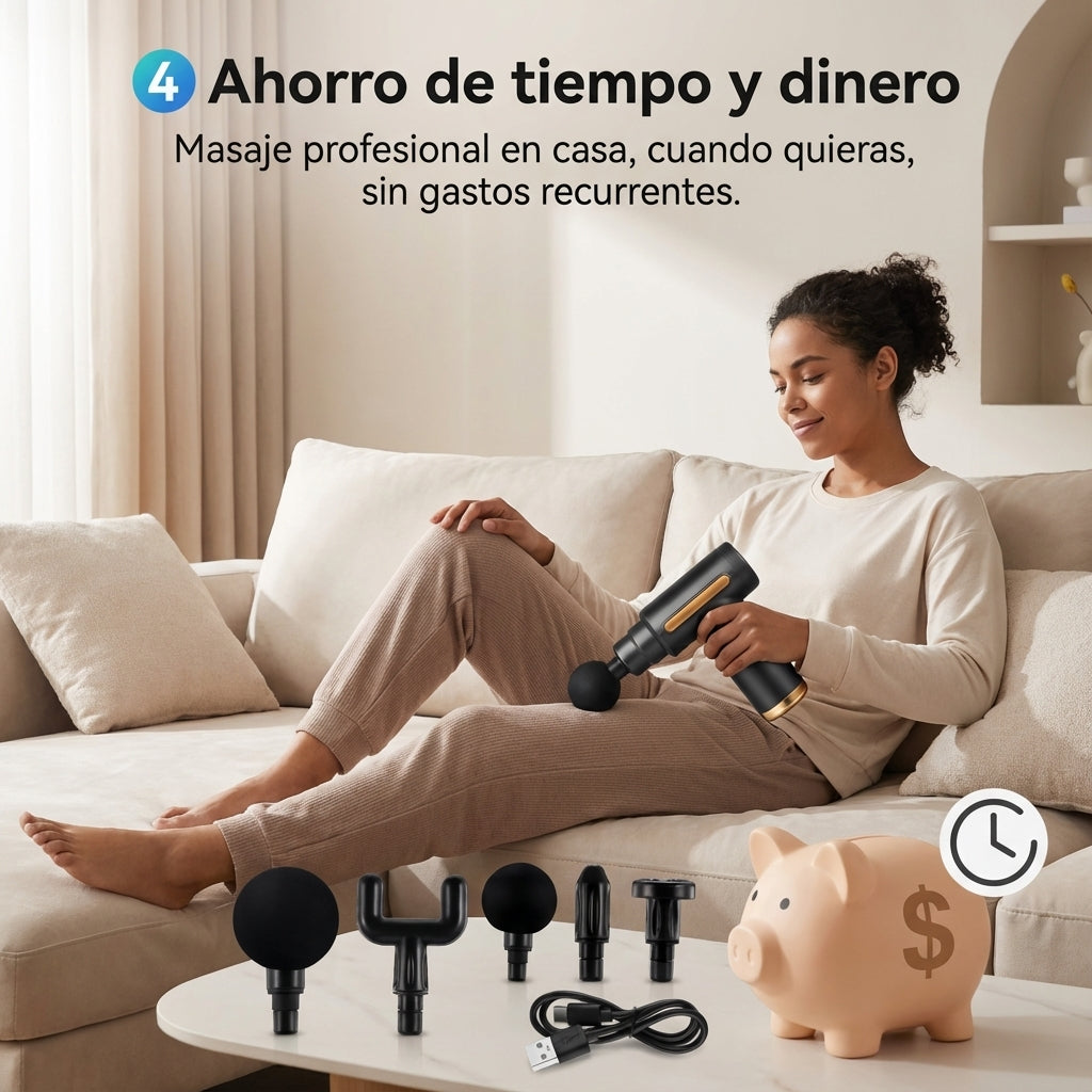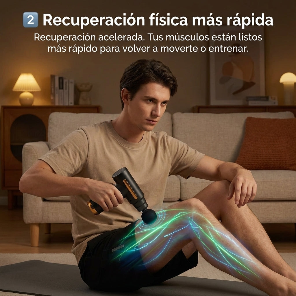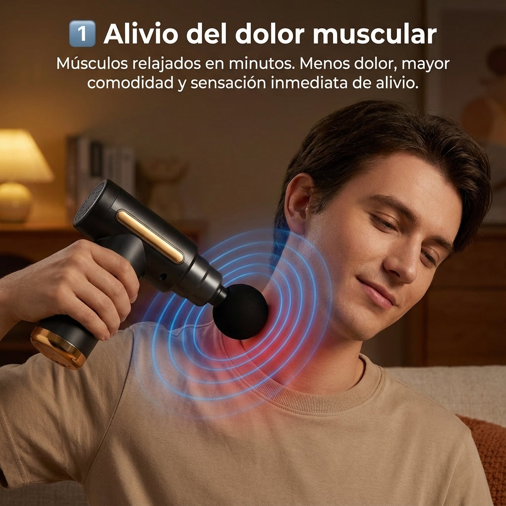 Alivia el dolor y la rigidez muscular en pocos minutos. Relaja contracturas, mejora la circulacion y acelera la recuperacion sin citas ni gastos recurrentes.